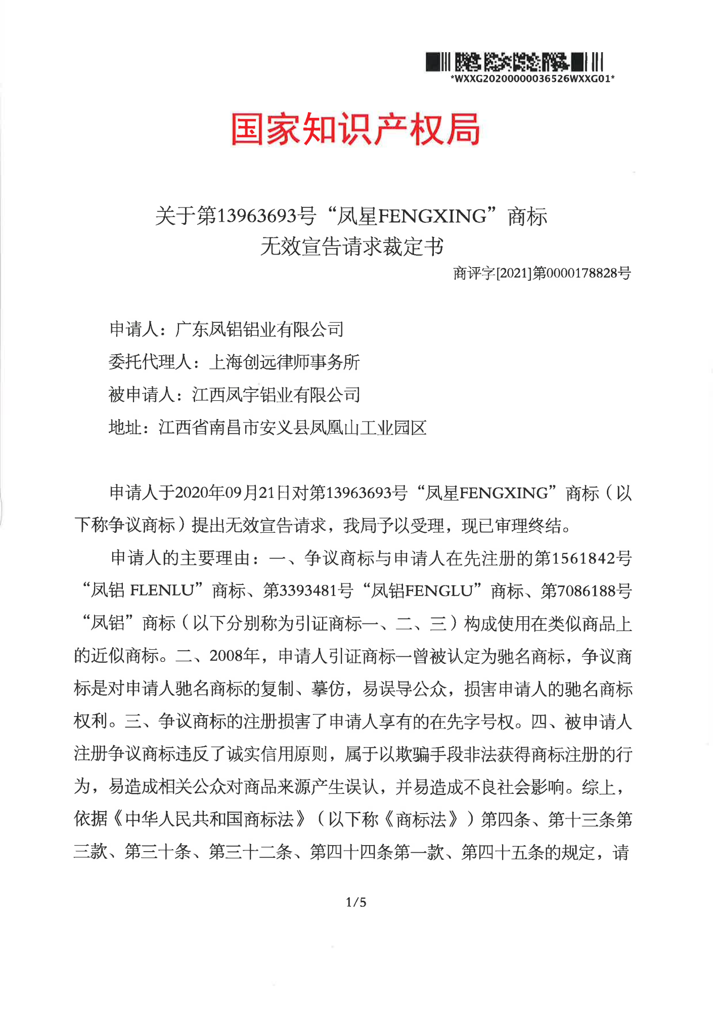 徐州辉知队 | 国家知识产权局:“凤星”商标无效