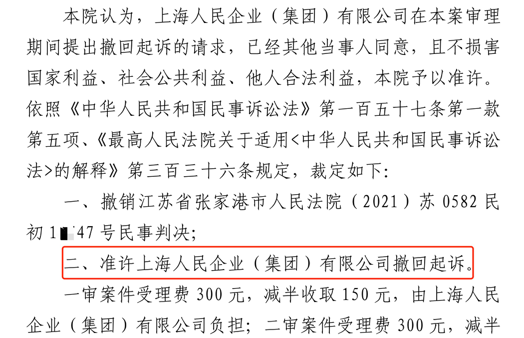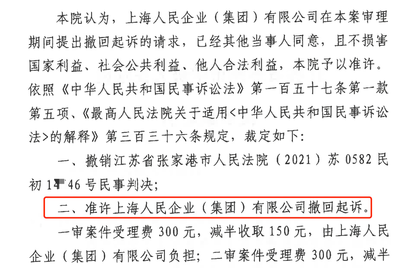徐州胜诉佳讯 | 人民企业系列案苏州六案上海人民公司撤诉