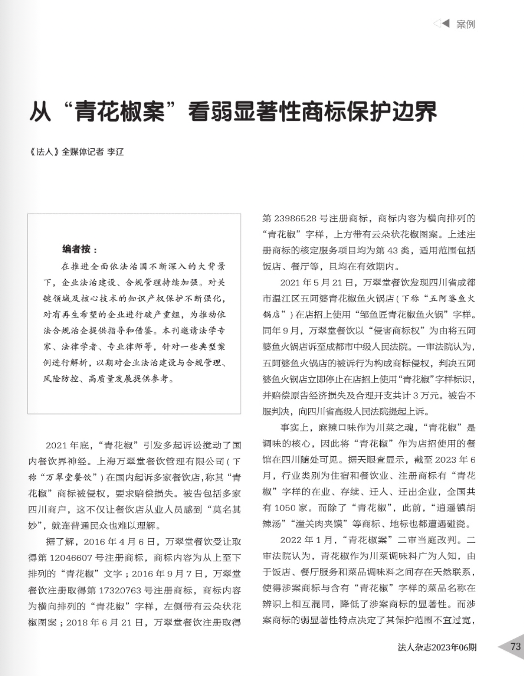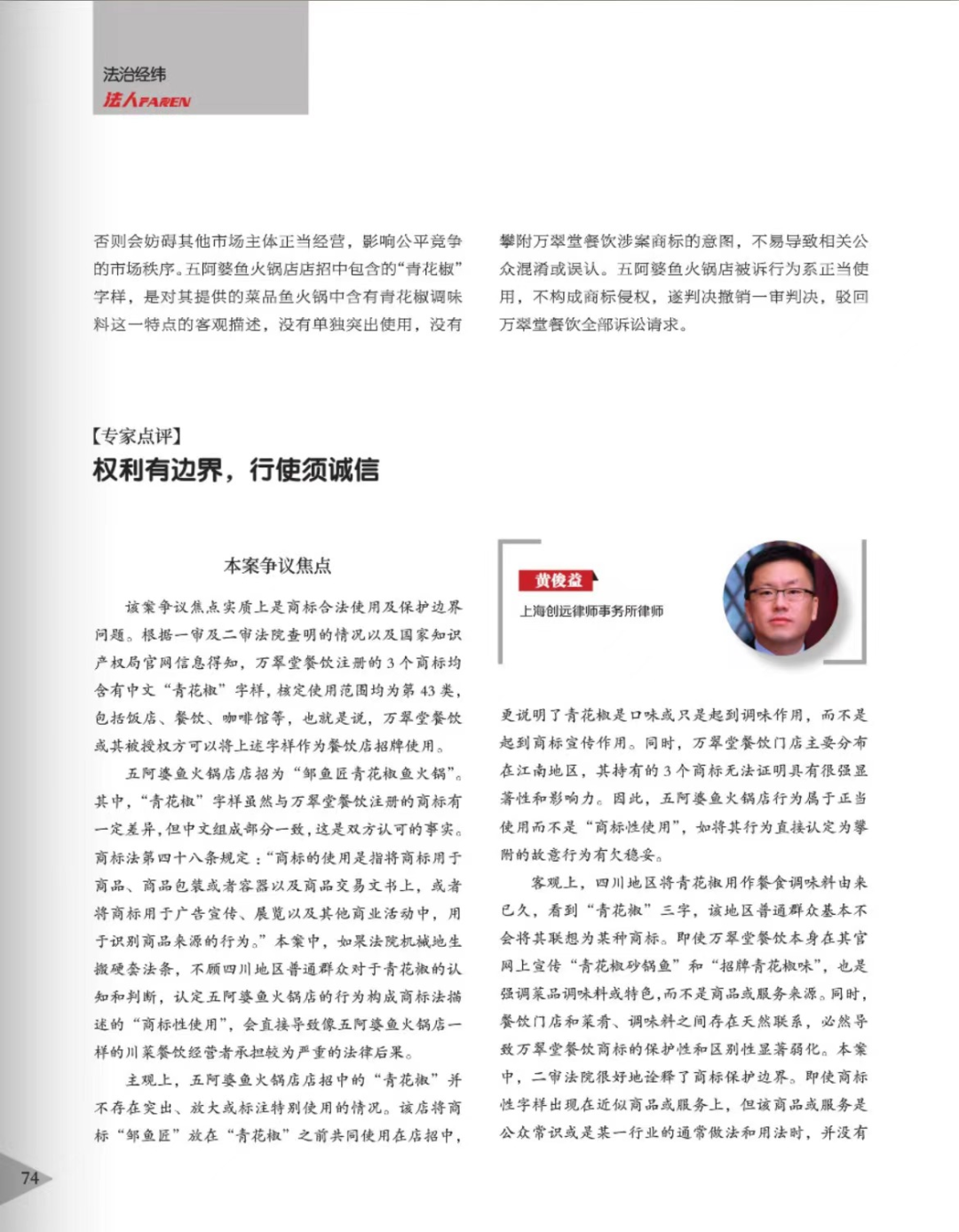 徐州辉知简讯 | 辉知队黄俊益律师应“法治日报”旗下杂志邀请,就“青花椒”案发表专家点评